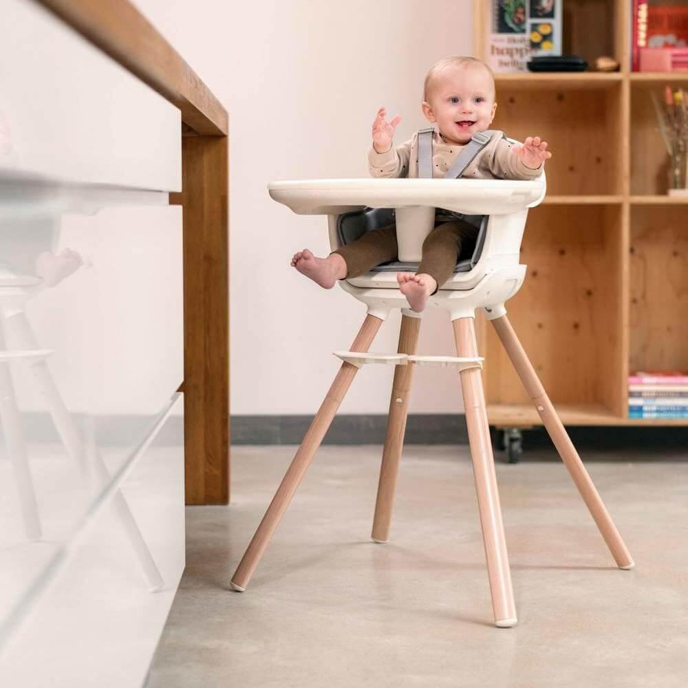 Confortável e segura: Na fase de cadeira de refeição alta, a Moa desempenha um papel fundamental ao permitir que o bebê participe das refeições da família na mesa. Com a capacidade de ajustar sua altura em duas posições diferentes, ela se adapta ao crescimento do seu filho.