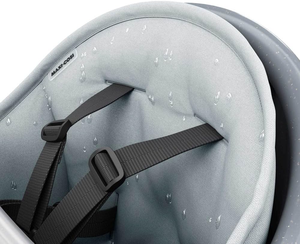 Resistente a líquidos e fácil de limpar: A cadeira Moa transforma a hora da refeição em um momento feliz e agradável. Ela possui um tecido impermeável, o que significa que qualquer líquido derramado é repelido. Além disso, tanto o tecido quanto o cinto podem ser lavados na máquina.