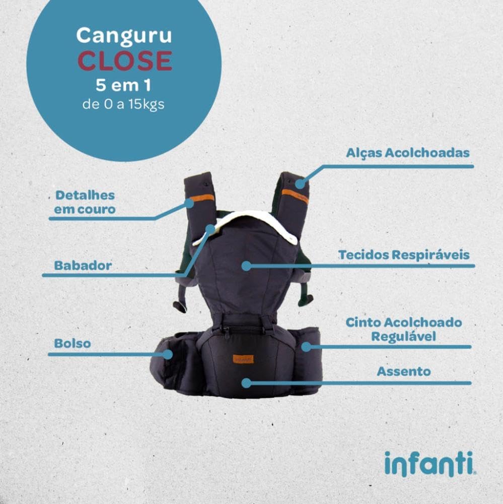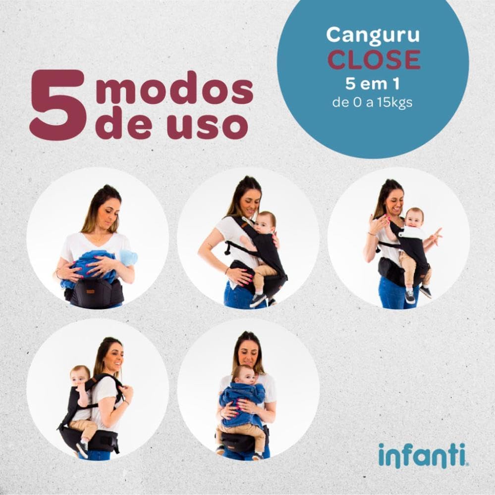 O Canguru Close 5 em 1 oferece a solução perfeita para proporcionar uma proximidade e conforto durante os passeios tornando estes momentos ainda mais especiais junto ao seu pequeno.